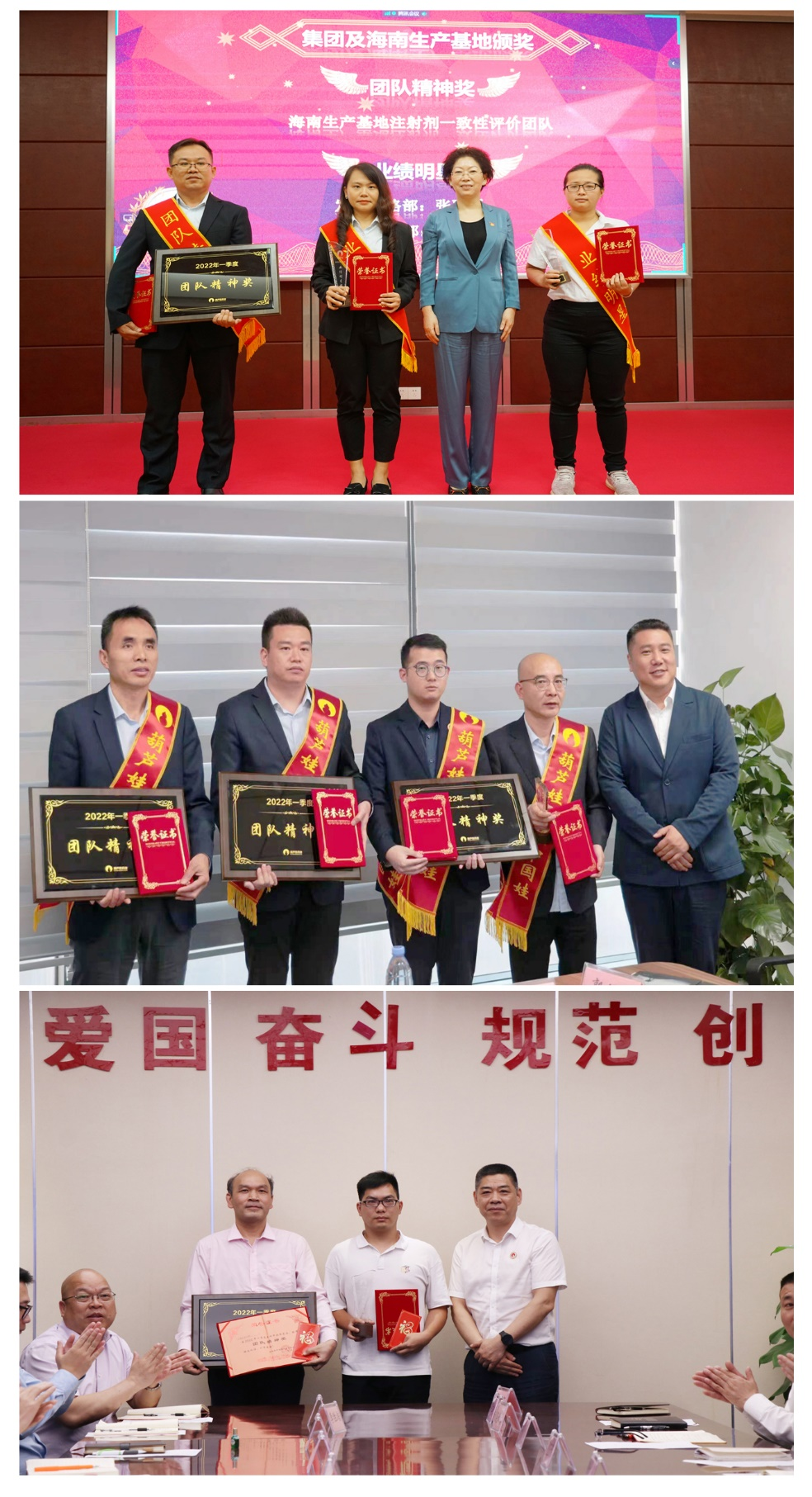 为了表彰在2022年一季度“深化变革,赢得开门红”工作中“超额完成计划、超出本职工作或超越组织预期”的先进集体和优秀个人,会议期间还举行了龙8药业集团2022年一季度“开门红”表彰颁奖仪式。营销中心葫芦世家事业部湖南区域主管黄子杰等12人荣获业绩明星奖,葫芦世家事业部等5个集体荣获团队精神奖。