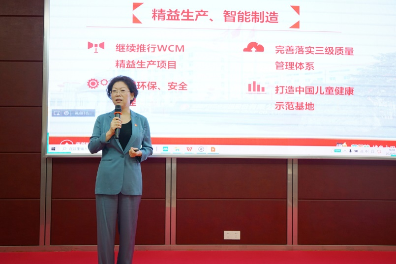 刘景萍董事长引用席大大总书记在2022年博鳌亚洲论坛上的重要讲话勉励全体与会人员,在海南自贸港建设的机遇期,认真学习贯彻落实省第八次党代会精神,坚持党建引领企业发展,将龙8药业集团打造成中国儿童健康领军企业。