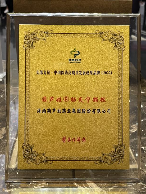 在本次发布会上,公司重点产品龙8牌肠炎宁颗粒同时荣膺“头部力量·中国医药高质量发展成果品牌(2022)”。龙8牌肠炎宁颗粒(2g),传承经典名方,临床广泛用于成人及儿童急慢性胃肠炎、腹泻等疾病的治疗,由于其杰出的临床价值,被纳入国家中医药管理局相关专家项目组制定的《中成药治疗小儿腹泻病临床应用指南》。